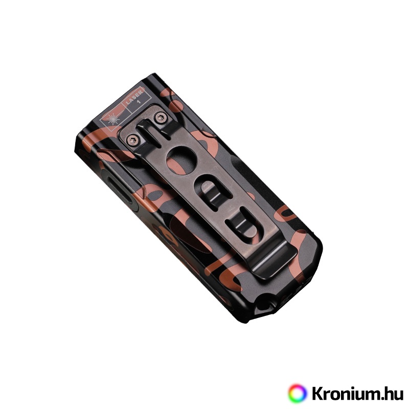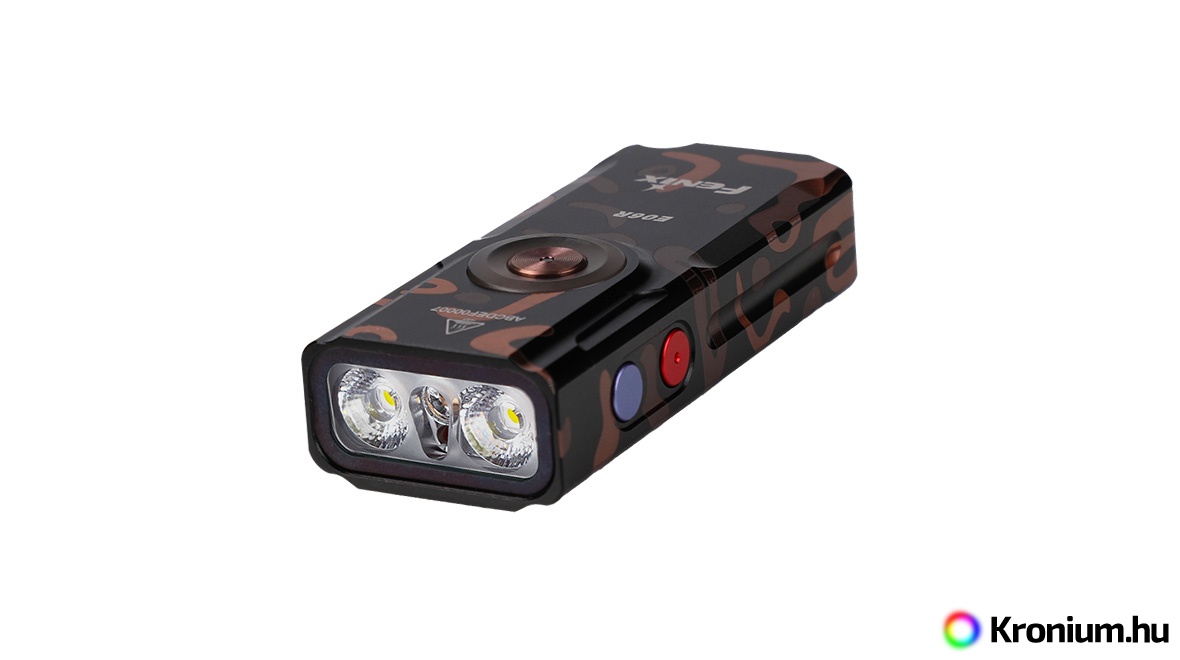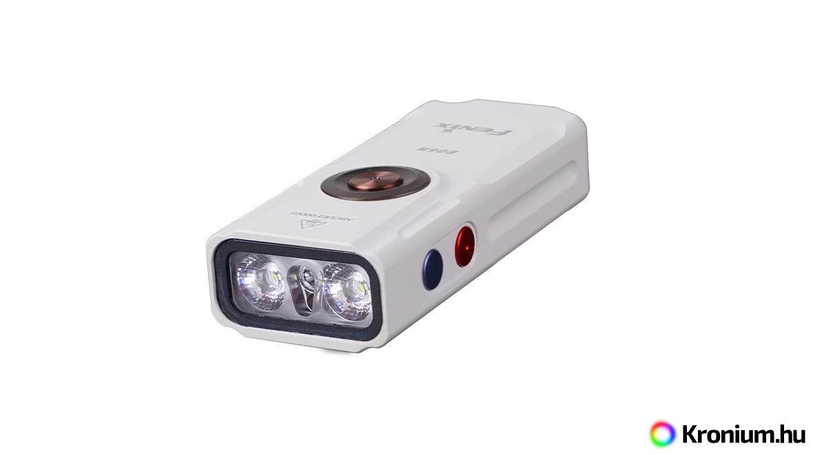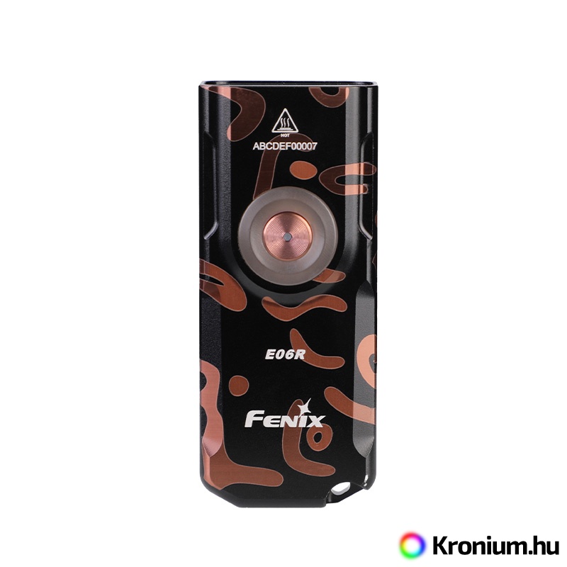 A Fenix E06R a sikeres miniatűr újratölthető zseblámpa a Fenix E03R V2.0 nagyobb méretű változata. Ehhez képest nem csak nagyobb teljesítményű, hanem ultraibolya fénnyel és lézeres mutatóval is rendelkezik. Kompakt mérete és mindössze 54 grammos súlya ellenére nagy, akár 700 lumenes (ANSI) fénykibocsátást biztosít. A fénysugár egyenletesen világít meg egy széles területet akár 110 méterig. Az áramellátásról egy beépített 750 mAh akkumulátor gondoskodik, amely a zseblámpa oldalán található modern USB-C csatlakozón keresztül tölthető. Összesen négy fehér fénymód, egy 365 nm-es hullámhosszúságú UV fény amely 580 mW teljesítményű, és egy vörös lézer (mutató ≤0,39 mW) és az úgynevezett Breathing light több üzemmódja áll rendelkezésre. Breathing light- a kapcsológomb körüli 0,5-1 lumen fényerővel rendelkező fények, amelyek a zseblámpa helyének feltűnésmentes jelzésére vagy azonosítására használhatók. A zseblámpához egy erős klipsz tartozik, így a zsebére, hátizsákjának pántjára vagy sapkája napellenzőjére rögzítheti, hogy világítás közben szabaddá tegye kezét. A zseblámpa talpában található mágnesnek köszönhetően bármilyen vasra rögzítheti. A gombban található akkumulátor töltöttség jelző szintén praktikus. A zseblámpa kiválóan alkalmas EDC használatra, és kis méretének, lapos formájának és súlyának köszönhetően mindig magánál tarthatja.