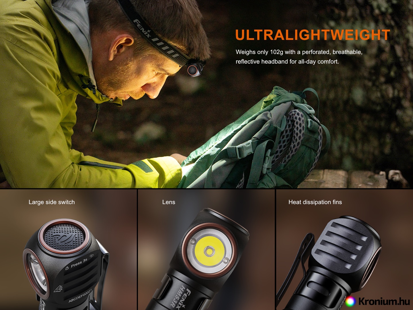 Rendkívül tartós, könnyű és az igényes felhasználókra szabva. A tölthető Fenix HM53R Garnet fejlámpa egy speciális kiadás, amelyet a csúcsteljesítményre és a terepen nyújtott maximális praktikumra összpontosítva terveztek. Káprázatos, akár 1200 lumen (ANSI) fényáramot kínál, akár 158 méteres hatótávval. Fő előnye a semleges fehér fény (4500 K), amely valósághűbb színvisszaadást és sokkal jobb kontrasztot biztosít a természetben.