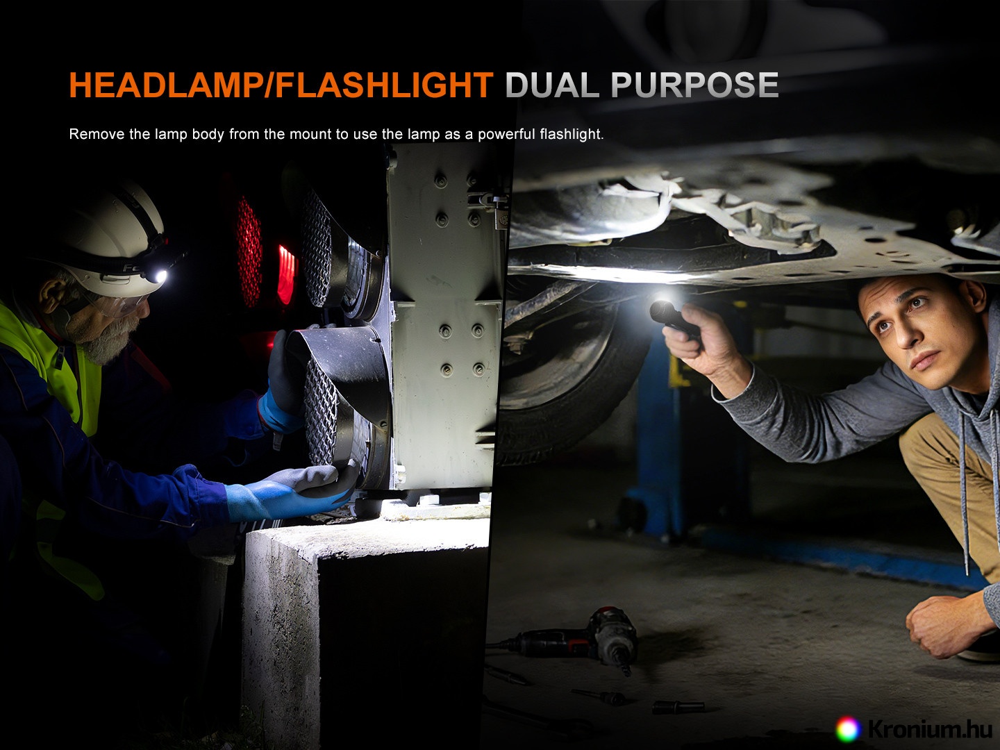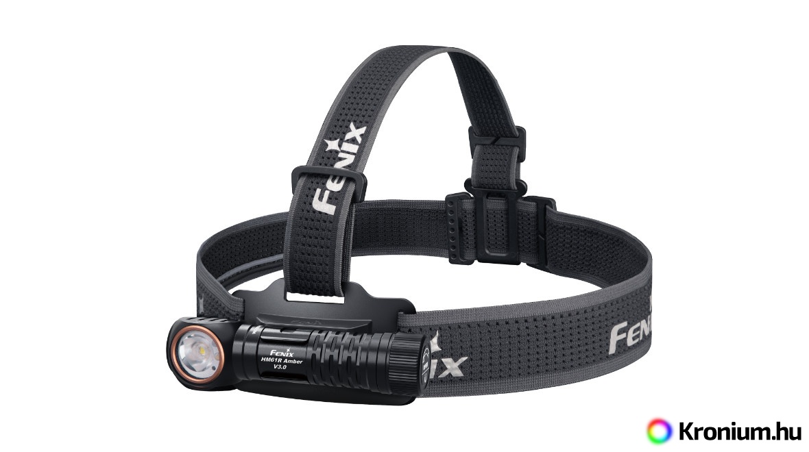 A Fenix HM61R Amber V3.0 tölthető fejlámpa akár 1800 lumen (ANSI) fényáramot kínál semleges fehér fénnyel (4500 K), és akár 195 méteres hatótávolsággal. Összesen háromféle világítási típust kínál – távolsági, szórt és vörös fényt – így mindig kéznél van a megfelelő fény, akár terepet derít fel, sportol, műhelyben dolgozik, vagy csak olvasni szeretne a sátorban. A távolsági fényszóró jól fókuszált fénysugarat hoz létre nagy hatótávolsággal, míg a második reflektor fénynyoma nagyon széles és egyenletes. A széles kúpos reflektor maximális teljesítménye 200 lumen, magas színvisszaadási indexszel CRI >90 (Color Rendering Index). Rendelkezésre áll vörös fény és villogó mód is, akár 70 lumenes erősséggel. A tápellátást egy 4000 mAh kapacitású 18650 típusú Li-ion akkumulátor biztosítja, amely a csomag része, és modern USB-C csatlakozón keresztül tölthető közvetlenül a fejlámpában. Szükség esetén a fejlámpa táplálható RCR123A (16340) akkumulátorokkal vagy eldobható CR123A elemekkel is. A fejlámpa széles, kényelmes pánttal van ellátva. A pánt perforált a gyors izzadságelvezetés érdekében, és fényvisszaverő elemekkel van ellátva, amelyek biztosítják a jó passzív láthatóságot az úton való futás során.