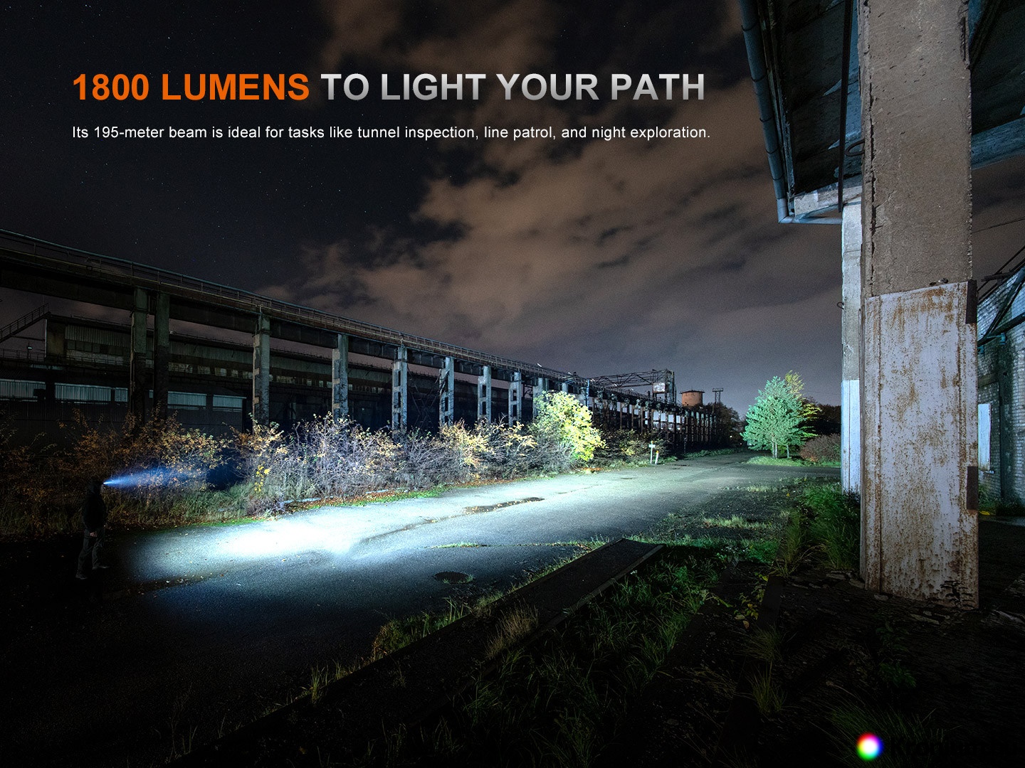 - A távolsági reflektor fénykúpja 195 méter (9680 cd) hatótávolságot biztosít, a széles reflektor akár 32 méterig (253 cd), a vörös fény pedig 17 méterig (70 cd) világít.
