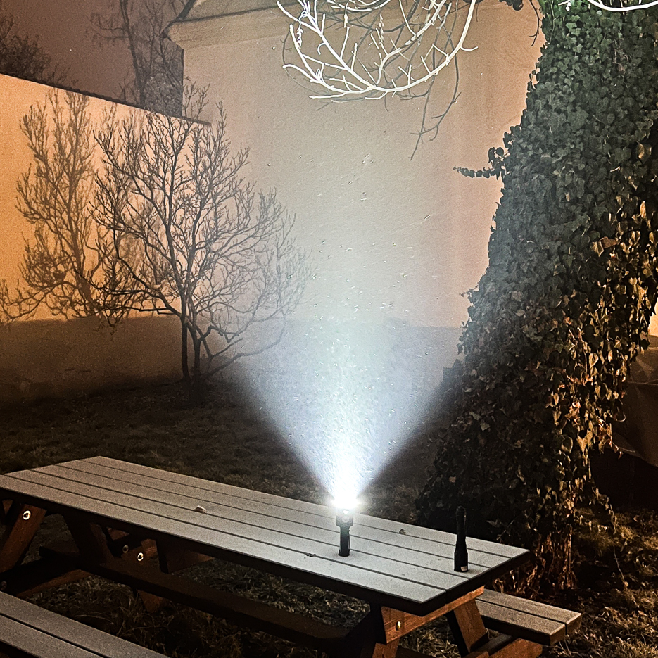 - Powerbank: Az USB-C port kétirányú. Szükség esetén a lámpa akkumulátoráról (összesen óriási 12 000 mAh!) feltöltheti telefonját.