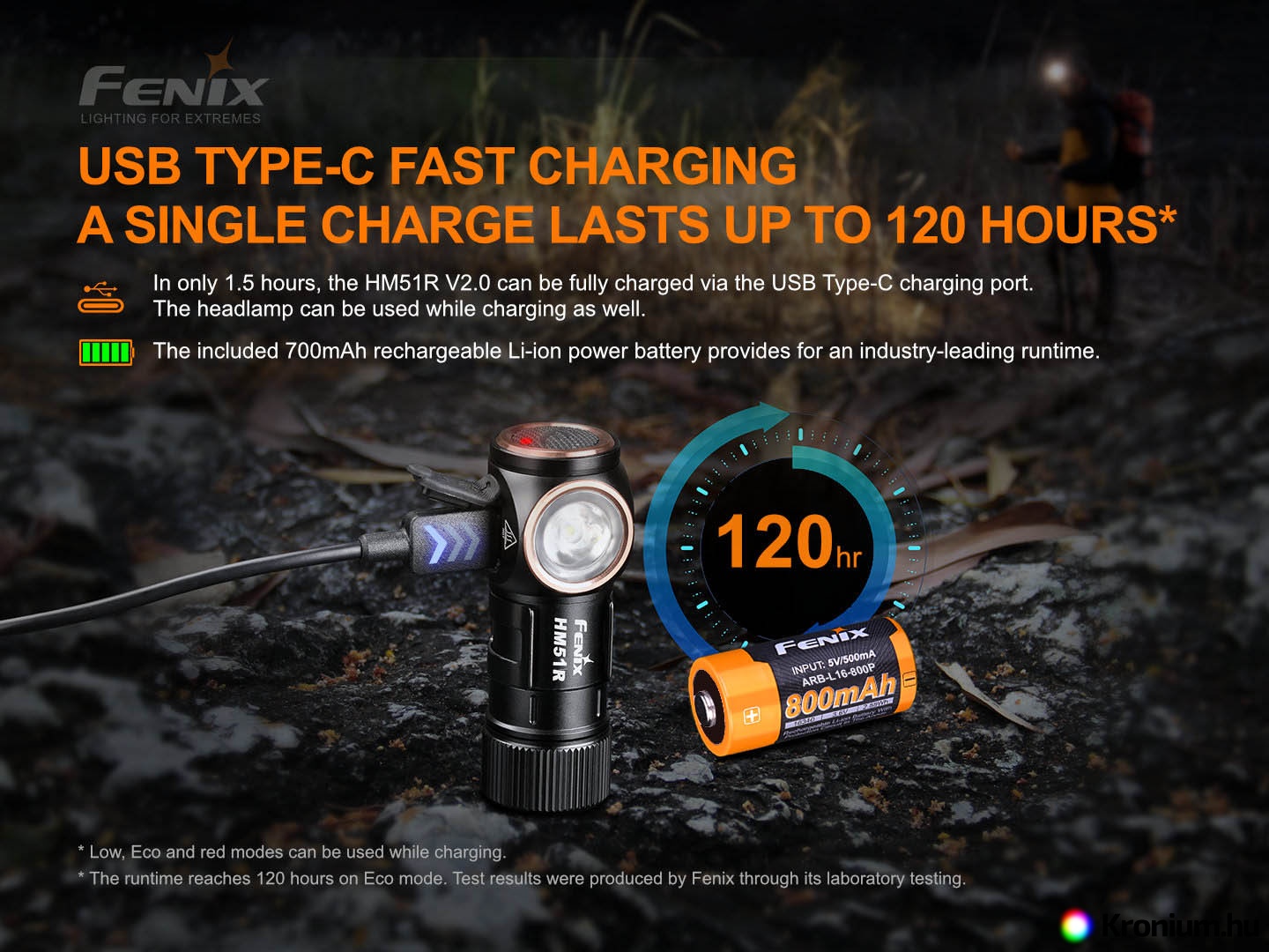- Egy Fenix RCR123A 800 mAh Li-ion akkumulátorral működik, amely a csomagban található.