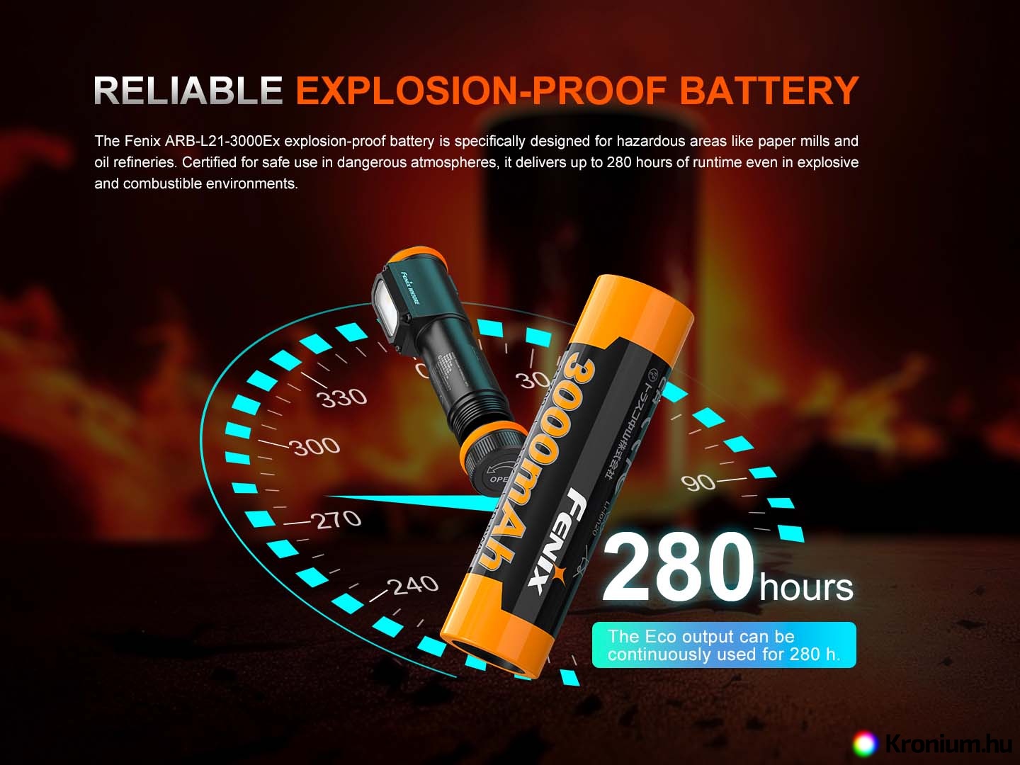 - Speciális Fenix ARB-L21-3000Ex Li-ion akkumulátort használ, 3000 mAh kapacitással. Ez egy módosított típus, amelyet robbanásveszélyes környezetbe tanúsítottak.